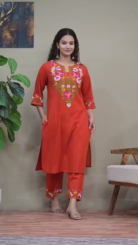 Step into effortless elegance with this beautifully crafted red embroidered kurta set, designed to blend traditional charm with everyday comfort. Made from pure cotton, this set is perfect for all-day wear, whether you’re heading to work, festive gatherings, or casual outings.
